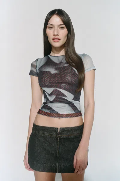 Give your wardrobe a little zest with the Mini Tee in the Feather print. She's mesh, edgy, and a lightweight accent to any outfit. Pair her with your favorite jeans by day, and spice it up with a mini skirt by night. You're going to need her.... . True to size.. . Please refer to the flat lay image for product accuracy.. .