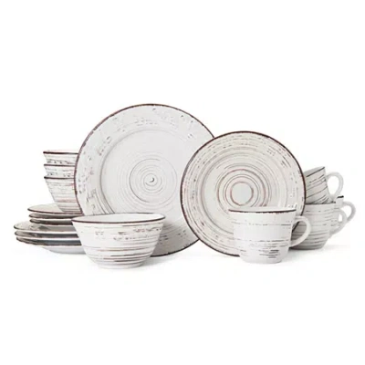 The rustic framework that gives summer gardens their beautiful design is the inspiration for Trellis White. Reminiscent of a metal trellis painted white then weathered by the elements over time, this unique dinnerware has a subtle scroll pattern and is accented by dark markings that give it an aged, worn look. It's a fresh, eye-catching addition to any tabletop. White glazed dinnerware with hand painted brushstrokes makes each piece slightly unique, no two pieces are exactly alike and will exhibit unique variations in color and pattern. Product may slightly differ from image shown. Dishwasher and microwave safe.# Pieces In Set: 16Included: 4 14 oz. Mug(s), 4 6 Inch Bowl(s), 4 10 1/4 Inch Dinner Plate(s), 4 8 Inch Salad Plate(s)Features: Microwave Safe, Dishwasher SafePlace Setting: Service for 4Shape: RoundBase Material: 100% StonewareCare: Dishwasher SafeDecor Styles: TraditionalMaterial: StonewareCountry of Origin: Imported
