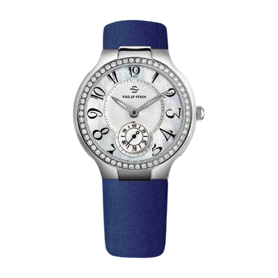You'll always look pulled together when you wear this exquisite women's timepiece from our Classic Collection of Philip Stein watches. Featuring a Philip Stein watch band and a beautiful mother of pearl dial surrounded by round-cut diamonds, it's both timeless and contemporary. You'll feel great when you wear it, too, thanks to the powerful health- and wellness-boosting Natural Frequency Technology within.