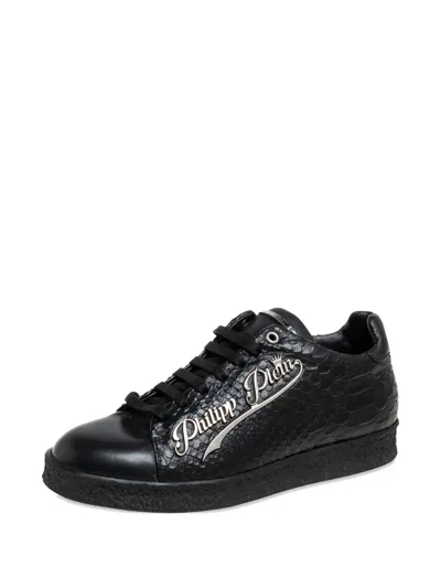 Pre-owned 2024 Leather Python-embossed Sneakers In Black