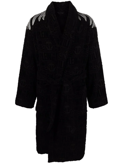 PHILIPP PLEIN Beaded Eagle Bath Robe In Black