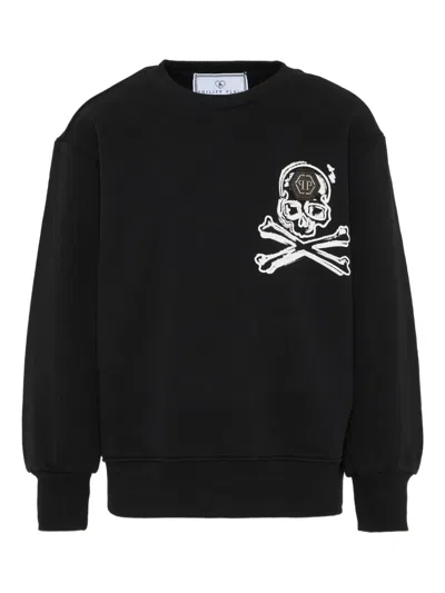 PHILIPP PLEIN JUNIOR Kids' Skull-appliqué Crew-neck Sweatshirt In Black