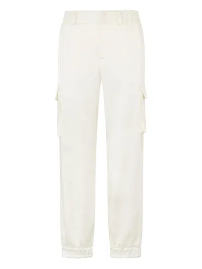 off-white satin finish patch pockets button detail elasticated waistband elasticated leg bottoms