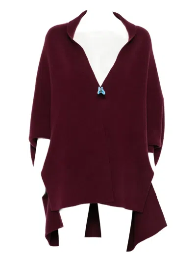 mulberry red V-neck shawl collar short sleeves asymmetric hem