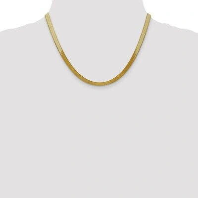 Gold Herringbone Chain Necklace | Designs by Nathan | 5mm 18" | Flat Designs by Nathan | Solid 10k Yellow Gold | Silky Flat Herringbone Chain Necklace | Lobster Clasp | 5mm x 18" = ~ 3/16 x 18 inches | Unisex Choose between widths of 3mm, 4mm, 5mm, or 5.5mm | Choose between 16", 18", 20", 22", or 24" long Drapes beautifully with a polished and silky look and feel | Made with solid 10k yellow gold Precision machine made for superior silkiness in the Dominican Republic Average 10k gold weights for 16" (actual weights will vary), by Width | 3mm - 4.80g | 4mm - 6.53g | 5mm - 9.06g | 5.5mm - 10.67g Average 10k gold weights for 18" (actual weights will vary), by Width | 3mm - 5.34g | 4mm - 6.96g | 5mm - 10.24g | 5.5mm - 12.23g Average 10k gold weights for 20" (actual weights will vary), by Width | 3mm - 5.84g | 4mm - 7.75g | 5mm - 11.18g | 5.5mm - 13.28g Average 10k gold weights for 22" (actual weights will vary), by Width | 3mm - 6.14g | 4mm - 8.56g | 5mm - 12.16g | 5.5mm - 15.16g Average 10k gold weights for 24"