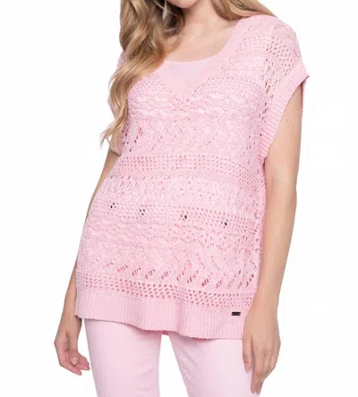 PICADILLY Open Knit V-neck Top In Soft Pink