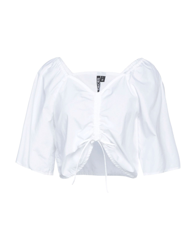 plain weave, frills, solid color, v-neck, short sleeves, no pockets , Color: White , Size: M