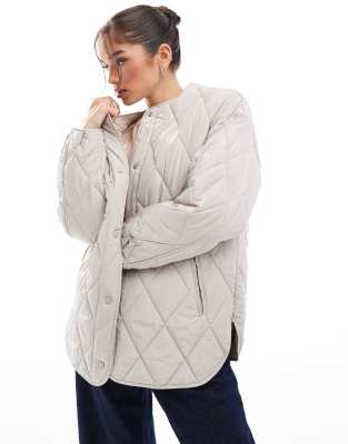 Coats & Jackets by Pieces Mid-season layering Plain design Crew neck Snap placket Functional pockets Regular fit