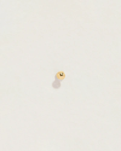 Cast in molten gold, this tiny stud is a dynamic rendition of the classic stud. Sold as a single. * This piece comes with a 6.5mm back post. Additional posts with different lengths can be purchased as add-ons. SIZE & MATERIALS Composition: 14k yellow gold Measurements: stud: 2mm, 16 gauge Closure: threaded heart-shaped ball back Read about piercing jewelry and closure system