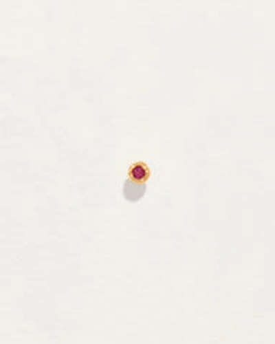 A petite ruby is encased in a setting of velvety 1 4 k gold with a molten, irregular finish, creating an organic yet dainty stud. Perfect for layering and to be worn as an understated everyday option for lobe, helix, tragus, and flat piercings. Sold as a single. SIZE & MATERIALS Composition: 14k yellow gold, ruby Measurements: stud: 3 mm, threading: 19 gauge (0.95 mm) width, 6.5 mm post length Closure: threaded heart-shaped ball back Read about piercing jewelry and closure systems. Collections Ruby Piercing - Ruby Jewelry - Helix Piercing - Lobe Piercing - Tragus Piercing - Flat Piercing