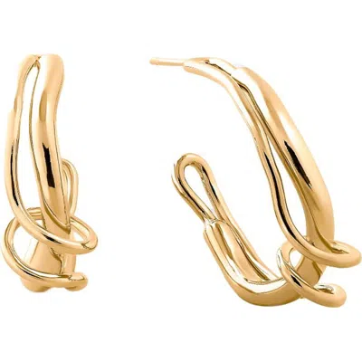 The flowing lines of vines inspire these hoops. This design elevates your look, as each piece is hand-molded, giving it unique value. 0.98" W X 1.06" L Gold Plate Ethically Handmade Engraved with Pieretti logo Item 9G