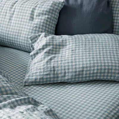 Gingham Linen Blend Fitted Sheet In Warm Blue Gingham
