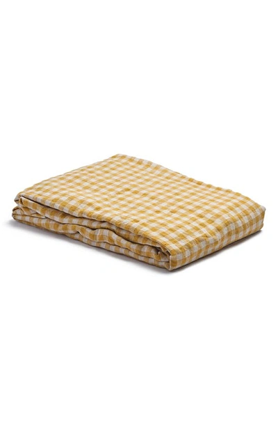 PIGLET IN BED Gingham Linen Fitted Sheet In Yellow