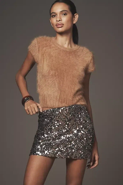 100% cashmere Short sleeves Pullover styling Dry clean Imported Brushed Cashmere Short-Sleeve Sweater by Pilcro in Beige, Women's, Size: XL, 100% Cashmere at Anthropologie