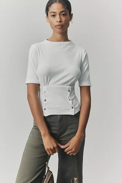 PILCRO Button-bodice Waisted Top In White