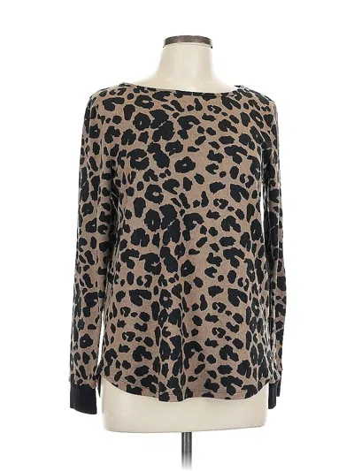 Pink Clover Pullover Sweater, Size: Large. Item Details: Brown, Animal Print Pattern, Scoop Neck, Long Sleeve, Velvet, Women's Tops