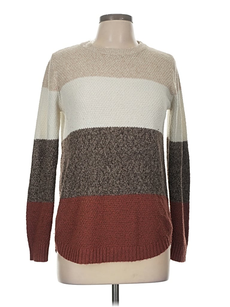 Pink Clover Pullover Sweater, Size: Medium. Item Details: Brown, Color Block Pattern, Crew Neck, Long Sleeve, Women's Tops, 100% Polyester