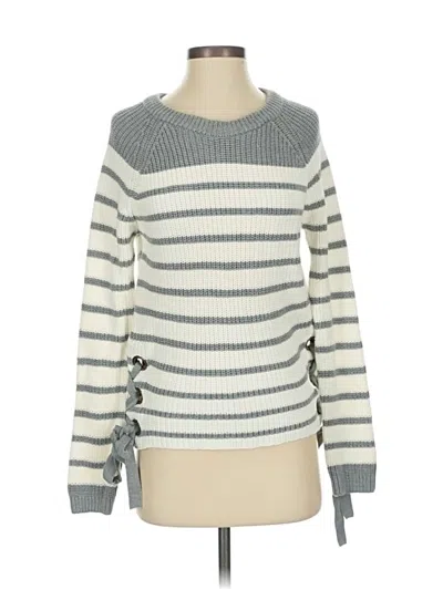 Pink Owl Pullover Sweater, Size: Small. Item Details: Gray, Stripes Pattern, Tie Neck, Long Sleeve, Lace Up, Women's Tops