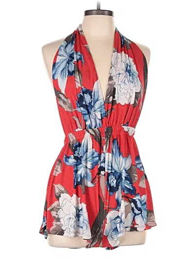 Pink Owl Romper, Size: Large. Item Details: Red, Floral Pattern, Tie Neck, Skinny Leg, Sleeveless, Women's Dresses, Polyester/Spandex