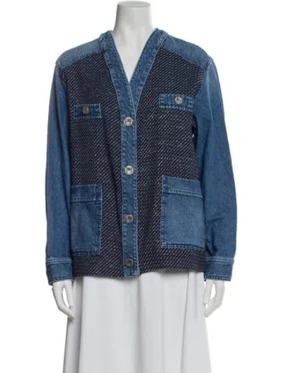 Pinko Denim Jacket Blue & Metallic Pointed Collar Patch Pockets & Button Closure Fit: Jackets by Pinko typically fit true to size. | Pinko Denim Jacket in Blue/Metallic, Women's US4, IT40 | S