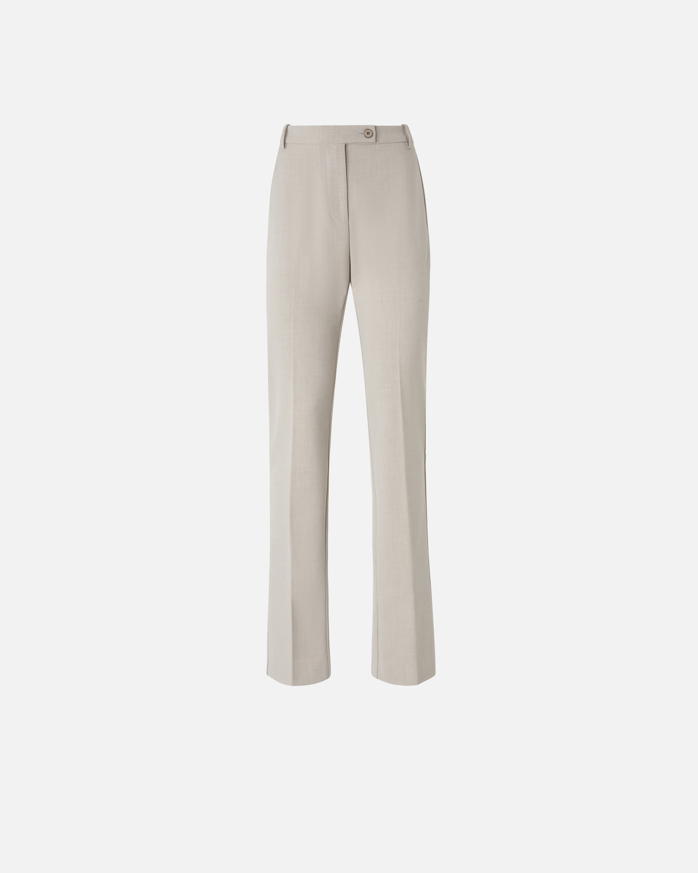 Long straight-leg trousers in classic-inspired melange canvas bonded with technical jersey. A perfect example of reimagining a more formal design, this garment features innovative and sporty details, including the almost unnoticeable zip closure at the back of the legs, which allows you to create a slit that's adjustable in length. These are the perfect trousers to wear to the office with the matching blazer or wherever you want to bring a touch of refinement, paired with a feminine shirt or top.