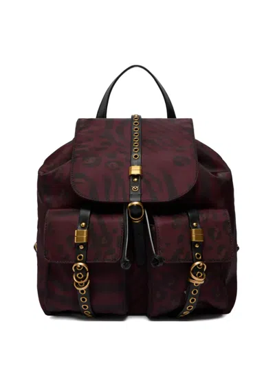 Medium-sized backpack with soft, spacious design, made from nylon with a tone-on-tone print that combines two distinct animal patterns. This model, complete with top handle, stands out for its combination of practical and decorative features, as demonstrated by the outer strap fastening with eyelets, metal rings and Love Birds Diamond Cut logo plaque, and by the large front pockets with flap, also enhanced by straps with eyelets and metal rings. Perfect for giving your everyday outfits a stylish, functional finishing touch, this backpack also has large adjustable ribbon shoulder straps and an inner drawstring that opens to reveal a lined main compartment featuring a zipped slip pocket with logo-branded label. Activate your PINKO accessory: verify the authenticity of your product and access a personalised experience by scanning the Love Birds embroidery on the back with your smartphone!