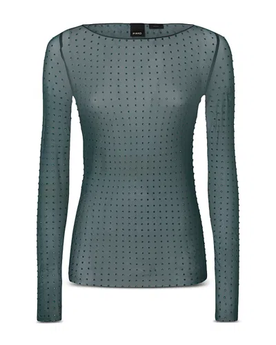 Pinko Rouen Maglia Studded Boat Neck Top .Color:Dark Bottle Green.Size:XXS.Material:82% polyamide/18% elastane; embellishment: glass.Tops.