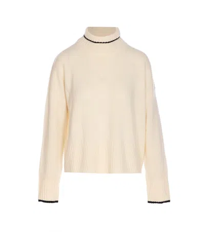 Pinko White And Black Falkland Sweater, Turtleneck, Contrasting Profiles, Logo On Front, Knitted, US SIZE