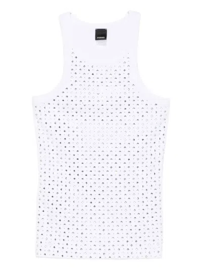 PINKO Tank Top With Rhinestones And Studs In White