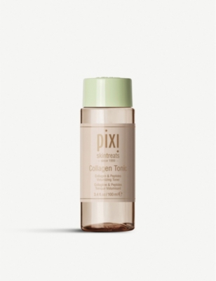 Smooth your skin with the Collagen Tonic from PIXI. Infused with Fruit Extract and nourishing botanical blend, this toner offers antioxidant protection, shielding the skin from environmental aggressors and urban pollutants. Infused with Acacia Collagen, the formula works to rejuvenate and plump the skin, helping to smooth out any fine lines or wrinkles. Peptides strive to even the texture and tone, while Coconut Water hydrates and locks in moisture. Finally, Sea Salt restores naturally occurring minerals to the skin, conditioning the complexion. Reveal a younger-looking and healthier feeling surface with this powerful toner. Suitable for all skin types. Free from parabens, alcohol. Cruelty-free.