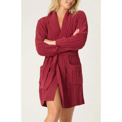 PJ SALVAGE Cozy Chenille Cable Knit Robe In Red