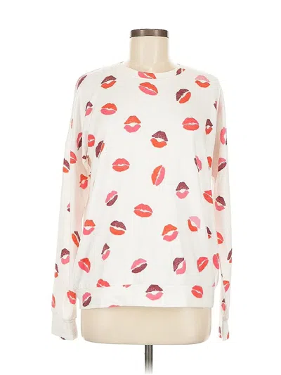 P.J. Salvage Pullover Sweater, Size: Medium. Item Details: White, Print Pattern, Crew Neck, Long Sleeve, Women's Tops, Polyester/Rayon/Elastane