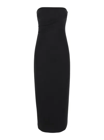 Black Bustier Dress With Slit In Tech Fabric Woman