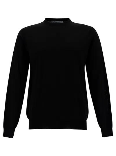 Black Crewneck Sweater With Ribbed Trims In Wool Man