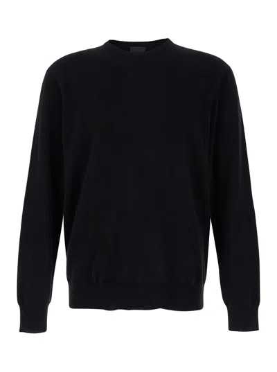 PLAIN Black Crewneck Sweater With Ribbed Trims In Wool Man