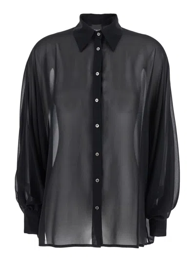 PLAIN Black Oversize Blouse With Classic Collar And See-through Design