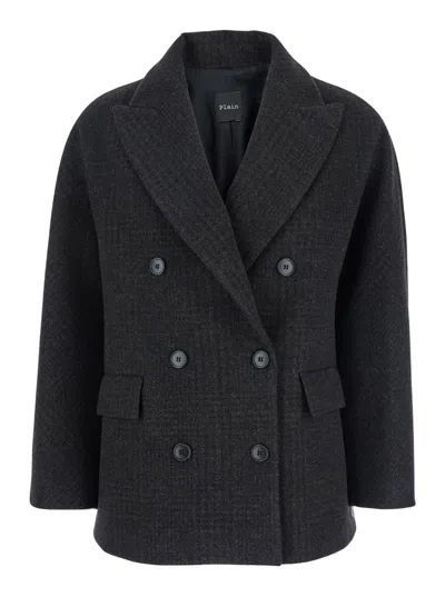 Plain's short peacoat showcases a classic double-breasted front and a refined notched collar. The subtle check pattern enhances its sophisticated appeal, making it suitable for both casual and elegant occasions. Designed for a relaxed fit, this versatile coat is perfect for day-to-night transitions.- Double-breasted front- Refined notched collar- Subtle check pattern- Relaxed fit- Versatile for day and evening wear