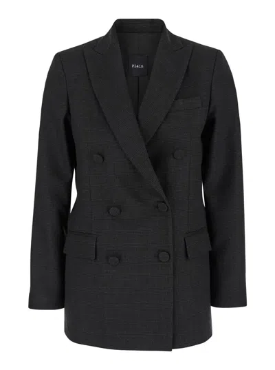 PLAIN Grey Double-breasted Jacket With Check Motif