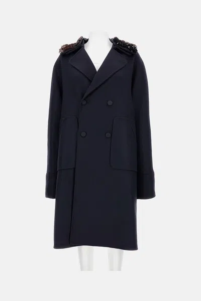 Long double-breasted coat with patch pockets. Sequin detail on lapel. Blue color, oversize fit, made in Italy Composition: 78% Wool, 22% Nylon