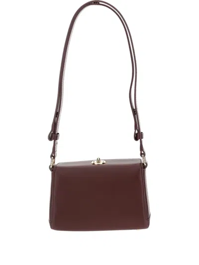 red leather adjustable shoulder strap flap top twist-lock fastening gold-tone hardware