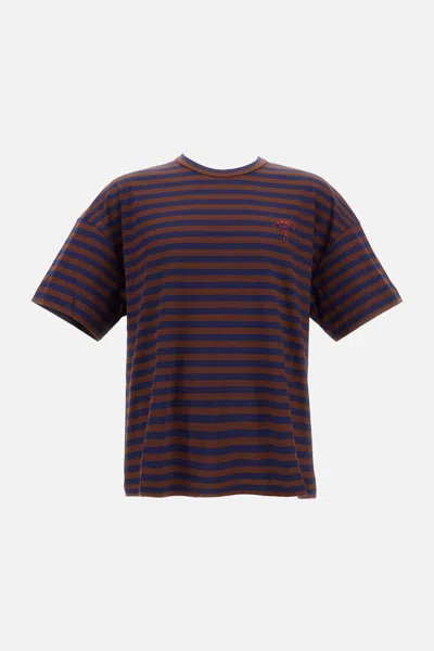Straight-fit crew-neck cotton T-shirt. Made in Italy, striped design. Brown with blue stripes. Composition: 100% Cotton