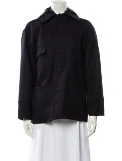 PLAN C Utility Jacket Blue With Hood Pointed Collar Patch Pockets & Button Closure Fit: Jackets by PLAN C typically fit true to size. | PLAN C Utility Jacket w/ Tags in Blue, Women's S