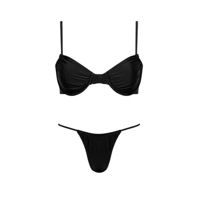 PLAYALUXE Women's Capri Black Ruched Underwire String Bikini Set