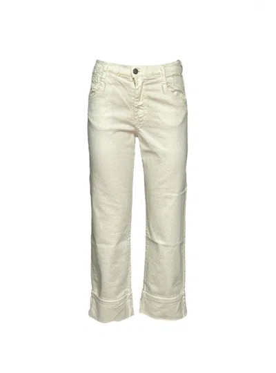 Pantaloni tessuto jeans bianco , con piegone e lunghezza polpaccio.