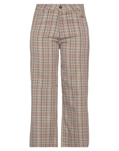 flannel, no appliqués, checked, high waisted, straight leg, regular fit, button closing, zipper closure, multipockets, pants , Color: Khaki , Size: S