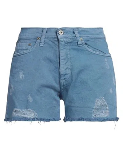 PLEASE Woman Denim Shorts Blue Size S Cotton, Elastane