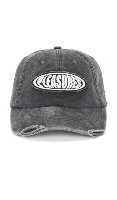 Pleasures Bubble Rip Cap in Grey - Black. Size all. 100% cotton. Adjustable back strap. Embroidered graphic. Ventilating eyelets. Brim measures approx 3 in length OS measures approx 23 in circumference. PLSU-MA40. P26SP073-GREY. About the designer: