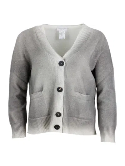 Long-sleeved cardigan sweater with shaded effect with button closure