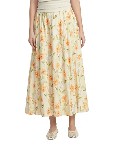 Point Linen Panel Skirt.Color:Flowers.Size:XXL.Material:55% linen/42% rayon/3% spandex.Skirts.