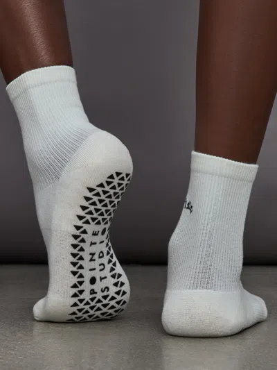 For Pilates, barre, yoga, and everyday movement. The Dont Slip Grip Ankle Sock delivers breathable comfort with secure traction for confident footing. A soft cotton blend supports airflow and moisture control through every session. A no-slip grip sole keeps you grounded on studio floors. Finished with Dont Slip embroidery for a playful reminder to stay steady. Feel: Soft, breathable cotton blend with cushioned comfort Fit: Ankle-length silhouette with snug, supportive compression arch Features: Non-slip grip sole, Dont Slip embroidery, reinforced heel and toe Activity: Pilates, barre, yoga, everyday wear Style Tip: White keeps your studio look clean, fresh, and minimal